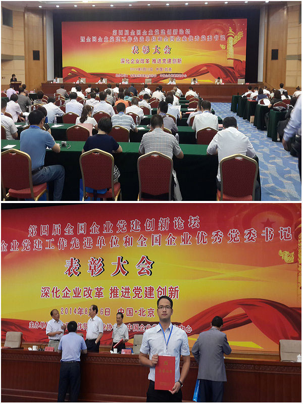 2014年8月15日,“全國企業(yè)黨建創(chuàng)新論壇暨表彰大會”在北京全國人大會議中心勝利舉行。全國人大常委會原副委員長、黨組副書記王漢斌、中共中央組織部原部長張全景等重要嘉賓領(lǐng)導(dǎo)出席本次論壇。我司作為全國企業(yè)黨建工作代表受邀出席本次會議,并獲得“2014年度全國企業(yè)黨建工作先進單位”榮譽稱號,黨支部書記張宏新獲得“2014全國企業(yè)黨建工作先進工作者”榮譽!這是對我司過去重視企業(yè)黨建工作,把公司發(fā)展結(jié)合黨建創(chuàng)新,深化企業(yè)改革重要成果!